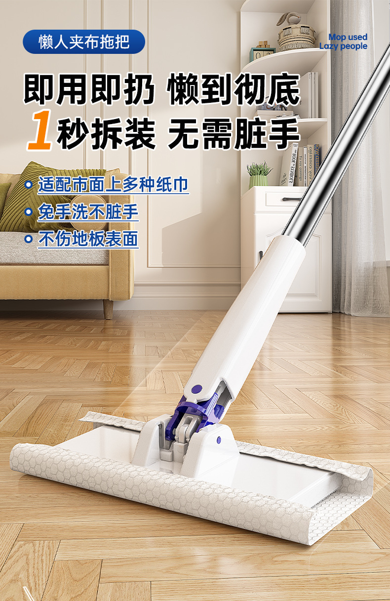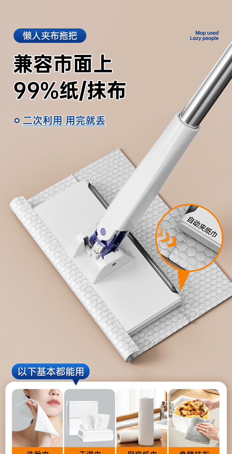 洗脸巾拖把夹专用自动夹布一次性免手洗懒人小拖把多功能抹布擦地